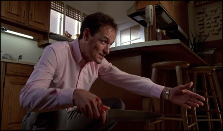 Powerful opening scenes are hard to come by as Hollywood’s creativity diminishes with each and every year. In fact, creativity and imagination is practically dead in Tinsel Town. Now-a-days, we have to rely on indie productions to fulfill the gaps of dullness in our lives when it comes to fantasy. Luckily, our hi technological ways have brought us the power of recording images; in this case, VHS, DVD and Blu-ray. Joseph Ruben directed a memorable opening scene of Terry O’Quinn, you know, the guy from the hit TV series Lost, walked down the stairs to a mutilated layout. No words, hardly an action had to translate the scene. This is a specific time in perfection.