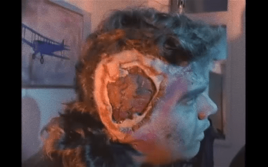 Remember when I said these types of horror films don’t typically expose acting artistry? Well, behind the camera, one or two crew members start their illustrious careers in the indie trenches. Such can be said for special effects master Joel Harlow who makes his introductory launch with “Killing Spree” and then find work on a couple sequels for “Toxic Avenger,” “Basket Case 2,” and all the way up to the Neil Marshall “Hellboy” and “Godzilla: King of the Monsters.” Yeah, I think Harlow made out OK. Harlow’s effects on “Killing Spree” will “blow your mind,” as stated on the back of the Blu-ray cover. Well, when Leeza’s head turns into giant lips then goes oral on Raymond Carbone’s head until his crown ejaculates, then, yes, these effects will blow your mind…literally! The medley macabre showcase Harlow’s craft from A to Z that includes a torched corpse, a disembowelment, severed undead head, and a nosy neighbor without a nose or without half a face for that matter.