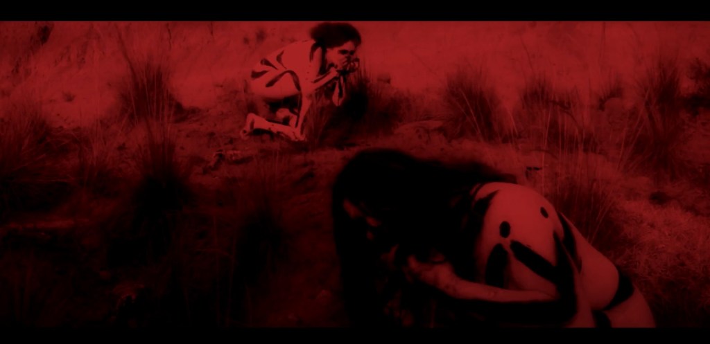 To put it simply, “Blood for Flesh” is madness of unchecked immorality and to make something this deranged, Hernández would have needed a likeminded cast small enough to pull off callous scenes of rape, torture, and merciless death as well as aberrant scenes of incest surrounding three members of a truly messed up family. Beginning with the patriarch who is only know as the Father, played by Juan Manuel Martínez, whose subsequently becomes the violently persecuted by his own spawn after groveling at his daughter’s feet in a moment of bawling seeking forgiveness. Bound and gagged, beaten, and hung upside, the Father receives no mercy from his children and there’s no real revelation to why he’s become a subject of torture. Brother (Luis Navarro) and Sister (Erika López) fashion a complex relationship of courtship and collusion. As the Brother notes more than once in a divulging of truth the longing for his sister and his regretful reluctance in continuing the mistreatment of his father, its the Sister who seemingly has the upper hand, the hypnotic spell, over her love stricken brother and as Hernández dives into Sister’s unhinged scenes, especially where she marks her face and body with makeup, we come to realize that Sister just might not be right in the old cabeza. Now, how the cannibals – played by Christian Camara, Daniel Cruz, Enrique Diaz Duran, Aldo Palacios, and Marisela Plaza – fold into the family’s unraveling is a bit of a mystery but I’d like to think their naked savagery represents the rupture and hate between family and the cannibalism is kind of this dog-eat-dog mentality to come out on top by exploiting the other.