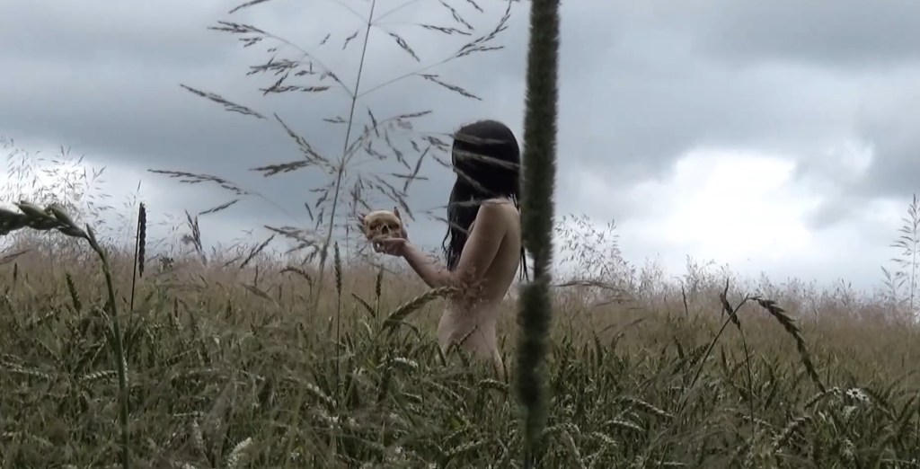 Juval Marlon is 2-for-2 in making the Nightmare Fuel collection on SRS Cinema’s Extreme and Unrated line of shocking, gory, and intense horror. The MVDVisual distributed “Solitude of the Tormentor’s” DVD is presented in a 1.85:1 aspect ratio on an impressively compressed DVD9 that decodes at an average of 7 Mbps. Foliage is detailed to every ribbed, photosynthetic leaf, the gore effects shine immensely in the details, especially with a lifelike prosthetics in the camera’s line of sight, and skin details rustle up nicely with shape and texture in every scene. Budget doesn’t allow for tints and gels, or any variation of artificial environmental supplements, leaving everything in the scene as about as naturally colored as it comes and slightly overexposed that creates a sheen on many surfaces, except for a handful of dimly-lit, low-contrast moments forced into lossy compression to pull out as much delineation and detail through the e-interference as possible. A quite a few number scenes extract agreeably on the screen, such as the image pulled for DVD front cover illustration of an obscured, naked Karla holding a skull palms up in a field of tall grass. Not only is the scene near impeccable in pixilation, as much as standard definition releases can muster, but the shot itself is mise-en-scene gorgeous and macabre. The lossy German language Dolby Digital 2.0 caters to the wind and chordophone instrumental score and harsh Germanic dialogue rather than additional surrounding ambience but will home in on deliberate dins with exaggerated chewing or the clickity-clack of a keyboard. Dialogue is clear and prominent in the composition of audio layers whenever there is no instrumental score until then does the dialogue have to fight for dominance. Through the extra’s menu, subtitles are optionally available. Also available in the extras is an interview with Isa Belle Fitzgerald discussing her project accepting process and nudity, an interview with Jörg Wischnauski on the graphic material and how he approaches acting, Juval Marlon’s short film “Spring Feelings,” aka “Frühlingsgefühle” with Jörg Wischnauski in the death during the birth of the lively season, and the film’s trailer. I already commented on the SRS Nightmare Fuel front cover to which that image also resides on the disc pressed art as well in a bloodshot tone. There is no insert included. The uncut, unrated DVD has region free playback and a runtime of 65 minutes, aptly paced for the content without lingering too long on naked frolicking but who can argue with Isa Belle Fitzgerald nudity? Director Juval Marlon lets it rip, literally and figuratively, in his grisly shocker that relieves itself here, there, and everywhere; an inducing catatonic crippler on path to likely become the Swiss filmmaker’s second banned and confiscated exploitation in a matter of years.