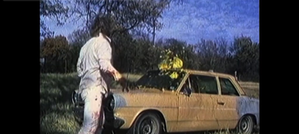 On the heels of “The Abomination,” shot back-to-back in the same month and also at nearly all the same set locations, “Ozone!  Attack of the Redneck Mutants” is the perfectly obscure grindhouse film for a double bill from directors Bret McCormick, who helmed the house-shelled creature feature “The Abomination,” and Matt Devlen’s environmental bumpkin zombie horror!   Shot on location in and around Poolville and Fort Worth, Texas, the lo-fi, flesh-eating, in more ways than one, gory feature is written by Brad Redd and produced by the Devlen and McCormick due along with composer Kim Davis, credited as Marie Skylar (“Body Parts”).  The film has a strong cautionary, allegorical theme of man-made containing spill effects on the environment, such as the ozone layer in this narrative, and their underlining harmful effects on humans that go to an exaggerated level of devouring each other in bits and pieces.  The body horror indie is self-funded by McCormick and Devlen and had a short run on VHS micro-label Muther Video.