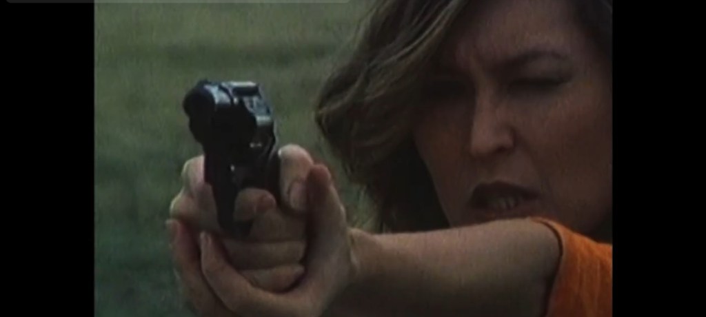 If you’re one of the lucky ones and seen Bret McCormick’s “The Abomination,” you may notice familiar actors in Devlen’s “Ozone!  “The Attack of the Redneck Mutants!”  However, the protagonists do a reversal of demeanor with Blue Thompson as Arlene, the environmental science student who is thrust into being a competent and adept fighter against the mutants whereas her character in “The Abomination” was no different than the stereotypical female victim of horror trope.  Scott Davis tackled the creature in his house with mild composer, even when it devoured his friends and family, but Davis’s Kevin Muncy is foolish and cowardly, wailing to the top of his lungs and flailing his arms and legs when attacked like he’s drowning in deep water because he doesn’t know how to swim.  Arlene and Kevin are an unlikely pairing, environmental antagonists, stuck together in the mutated middle traversing the back country while rural residents transfigure before their eyes into flesh-hungry fiends.  Loafing gun-toter Wade McCoy and his mother Ruby are two of those Poolville denizens that that come under threat.  Played by Brad McCormick, Wade’s a bit of a stereotypical caricature of the term redneck with plaid shirt, truck hat, beer in hand, and shotgun at the ready, as seen in earlier scenes with his character blowing off the broad face of old gourdes in his backyard.  Wade’s mother Ruby (Jance Williams, “Tabloid”)) is a fireball in her own aged way that’s gives evidence to Wade’s beer, guns, and philandering ways.  The rest of the cast are all farming mutants who receive sangre-spilling screentime with Luther Webb, Barry Stephen, Londy Porter, Regina Hackenbush, Leon Bardol and Lorraine Dowdy, Rhonda Rooney, and Barbara Dow as their victims.