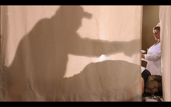 Not only does Hill write, direct, and produce, the filmmaker with a penchant for creating J-named characters is also the lead principal personal injury lawyer Jake Large, owner-proprietor of Large Lawyers. Though successful in his legal craft, Jake’s has developed depression when his once endearing fiancé Celine has turned against him as she sneaks around his back with a mixed martial artist. A loathing Celine is played severely cutting by Tritia DeViSha who has previous chemistry alongside Hill during their time on Hill’s “Revenge of the Gweilo” production and while the chemistry between their characters is palatably thick with contempt, there’s not much backstory in gain traction for sympathy, compassion, or any other emotive expression. Jake has a single flashback of his and Celine’s happiness in simpler times during a moment of what could be regret or longing, but there’s simply not enough breadcrumbs for their history to take shape of any form. Instead, their turmoil feeds into Jake’s unquestionable willingness to concede to a beautiful exotic dancer and damsel in distress named Candice (Phillyda Murphy). The attention is good, the sex is good, why not just give a little back by murdering her crooked stepfather (Anton Kormoczi – who also goes by Anton Trejo because he mildly looks like Danny Trejo)? Well, Jake’s lovestruck blindness obscures the real intent but, luckily for Jake, he has what he describes as a lucky rabbit’s foot in his secretary who aspires to be a private investigator and when she’s not punching keys, she’s clandestinely tailing Candice in a spying and snapping pictures behind trashcans and around corners caricature kind of way. The platinum blonde and distant relative of horror maestro, Dario Argento, Simay Argento is the peripheral probing dick Ayla Harp that initially doesn’t have this close-knit relationship with her boss until the third act when she happens to take it upon herself, after examining Jake’s behavior and reading his desk notes, to snoop into his private life on his behalf. It’s not entirely clear how she unearthed who exactly Jake became intimate with but she managed track down Candice’s exact location to snap a few black and whites. “Lady Terror’s” remaining cast feels very much like Ayla Harp in the disconnection of each other’s narratives, ridden along in choppy succession that leaves too many plot holes to fill. The cast rounds out with Leslie Lawrence, Anthony Cincotta, Robert Rafik Awad, Challise Free, and Adam Ramzi – the 40-year-old Melbourne actor, not the gay porn star.