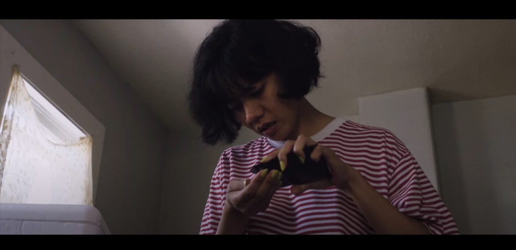 Keeping in line with a low-cost production, the story takes root at mostly one location, Lou’s rundown, multi-story house with creaky old floors and compact rooms, extending the location beyond the walls and into the house’s minute front yard where a pile of dirt with a strange jelly hole metamorphizing into an even stranger looking flower becomes the catalyst of weirdness.  Thai-American actress Faye Tamasa is Lola, the weary sister of Louis, played by Burt Thakur, who invites her to come stay with him during the beginning of a nationwide shutdown of unexplained purpose.  Lola and Louis, both once orphans and adopted by the same parents, haven’t seen each other in years and have rarely spoke.  Repeated motifs of isolation, such as the extension of their orphanage, and an awkward disconnect between them display their relationship instable without having an obvious clash to outright scream incompatibility between the two who don’t share bloodline but grew up together.  There’s still an affection quality between them but it is damaged.  And, then, in comes the third wheel that becomes the wedge between Lola and Louis’s relationship rekindling.  Cage, a dodgy spiritual pseud and played with monotonic sleaziness by Robert Brettenaugh (“Strange Blood”), interjects his numinous nonsense as a façade to impress Lola but as Lola sees right through him, Cage diverts his attention to the Jelly that drops the façade and unleashes his true spirit, a sociopath with an obsession.  The trio works to relay a significance in loneliness and isolating desperation in a sensationalized, supernatural way in finding a pathway through the lockdown blues.   Rounding out the cast with a small role that wouldn’t even be considered turning the trio into a quartet is Max Carpenter as a former love interest to Lola.