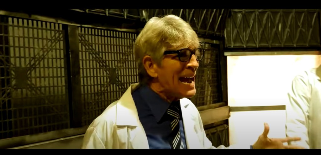 For all of roughly five minutes and a couple of lines of dialogue, Eric Roberts secures top bill on this what’s sure to be lost in the sharksploitation pit of nonsense. The once formidable 1980s and 1990s star, and brother to the high-powered and elegant Julia Roberts, “Best of the Best” and “Runaway Train” star has ebb-and-flowed vertically between mainstream Hollywood films and the lowest-of-the-low indies. “Space Sharks” is definitely in the latter category and doesn’t showcase much of Roberts’ given talent that has in recent years strayed to the more eccentric in a countless number of Dick, Jane, and Harry productions. Longtime scream queen Brink Stevens is another familiar who you’ve might not even known existed in the film if it wasn’t for the credits. Playing the nature hike leader but enveloped under the shade of a large sun hat, hidden behind large black sunglasses, and, too, with very little screentime, Stevens comes and goes like the snap of a finger. Other cult film actors are added to this ridiculous recipe with Mel Novak (“Game of Death,” “RoboWoman”) and Scott Schwartz (“A Christmas Story,” ‘Café Flesh 2”) folded into a cheap, B-movie run cast batter of Ferguson regulars to give this tasteless schlock some spice. If “Space Sharks” had to select a true principal lead, Allie Perez (“Amityville Emanuelle”) would be the closest as the lone surviving scientist with arms training to fend against the upright and muscularly athletic sharks while trying to make her way home to dad, Mel Novack, but tasked to protect desert lost civilians Nick Caisse (“Apex Predators 2: The Spawning”), Traci Burr (“Death Bitch”), Janet Lopez (“Liza: Warden from Hell”), Ben Anderson (“Witchblossom”), Breana Mitchell (“Cocaine Couger”), Daniel Joseph Stier (“The Clown Chainsaw Massacre”), Christine Twyman (“It Wants Blood!”) and Joshua Mooney (“Axed to Pieces”) from being chum.