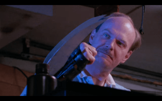 Without doubt, “Robot Ninja” was destined for the direct-to-video market and the quality of work obviously shows, but with flaws aside, the obscure 79 minute feature still manages to be a part of Bookwalter’s “Dead Next Door” universe full of gore, violence, and a distain for human nature despite briefly disavowing “Robot Ninja’s” mucked up existence for years. Subtempeco EFX, comprised of David Lange, Bill Morrison, and Joe Contracer, don’t exactly go cheap when Robot Ninja’s dual blades pierce and pop eye balls inside the skull of some punk or when Lenny’s patching up his injuries without as much flinching in pain, the open, surely is infected wound just pulsates with exploded flesh and blood. Bookwalter’s direction is hazy at times around the beginning with the dynamic between Lenny and his publisher that feels stagnant and irrelevant; however, the comic book scenes interwoven into the meatiest part of the story, the Robot Ninja action, is remarkably cool for a late 80’s budget gas.
