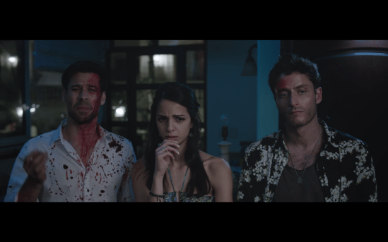 Like many opinionated reviews before mine, I never imagined Jay Baruchel directing a horror movie. The long time comedic actor with solid relationships working with other high profile comedians, such as Seth Rogen, Jonah Hill, and Danny McBride in some of the best notable comedies on the side of the century, has stepped into the shadows and professing his admiration for the genre we all love – horror. Baruchel cowrites and directs his first horror film, the big screen adaptation of Justin Gray and Jimmy Palmiotti’s “Random Acts of Violence” graphic novel. Fellow collaborator on the “Goon” movies, Jesse Chabot, branches out with Baruchel on the script and the two Canadian filmmakers yield an intense meta-gore picture focusing toward themes of lopsided public perspective and the glorifying of violence on other less physical mediums. Published in 2010 under Image Comics, the Gray and Palmiotti publication supplied a wealth of visceral material that unfolded faithfully in Baruchel’s Shudder distributed film as a stylish comicbook-esque narrative under the Toronto based Elevation Pictures, Wicked Big, and Manis Film production in association with Kickstart Comics and JoBro Productions. Palmiotti and Gray also serve as executive producers.