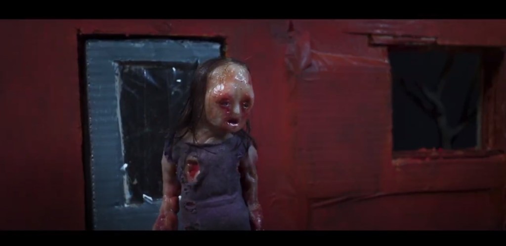 As much as I wanted to seep and soak into “Stopmotion’s” one-frame-at-a-time madness, I couldn’t help but to think I’ve seen this story before. A sort of déjà vu encircles me and hits me squarely in the gut as I lament over the possibility of feeling the same way I felt before with another film. Then, it struck me like a bolt of lightning that this storyline shares similarities with the 2021, Prano Bailey-Bond film, “Censor.” Now, I’m not saying “Stopmotion” is a direct carbon copy but follows a familiar pathway, a movie industry outlier forced by life and submersed under the weight to finishing what the heroines have started only to crack in deep obsession. On a high level, character impetuses that lead to the same conclusion are in stark contrast and Ella Blake’s descent fathoms family trauma and fixation with trying to be an individual and not just a minor component of a bigger, more impressive, machine that overshadows the necessary cog that makes the whole operate. Coupled with surreal imagery, otherworldly stopmotion animation, and physical effects that’ll make your skin crawl, or melt like wax, “Stopmotion” enlivens an animator filmmaker’s creativity outside the personifying vocation, blending genres and animations to exact a reality bending mania. Morgan’s fragmented segues evoke an alternate reality that skips the portions where the audiences’ minds might fill in the gaps. There is no gap filling, only essential, contextual moments, as if Morgan is the puppeteer to his story by arranging the movements one frame at a time reflect Ella’s poignant reminders and dour moments that mold her.