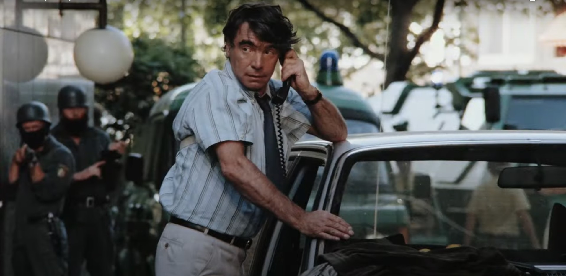 Two ex-cons hold up a Düsseldorf bank for 3 million German marks. Armed with handguns and brazen with their daytime theft, the two men hold hostage a handful of alarmed employees, rounded up before the bank opens for business, including the bank manager. Going into the heist with a money figure in mind, the vault is discovered with only 200,000 inside, but that was to be expected as the arrival of the police surround the building adjacent to the towering Nikko Hotel where a third man, the mastermind, spies down from one of the upper floors, instructing the two armed men inside of his plan as well as spying on the police activity aimed to thwart the robbery. Always one step ahead, police, bank employees, and even the bank manager’s wife are all a part of the organized crime for the riches, and maybe even exact a little retaliation in the process too.