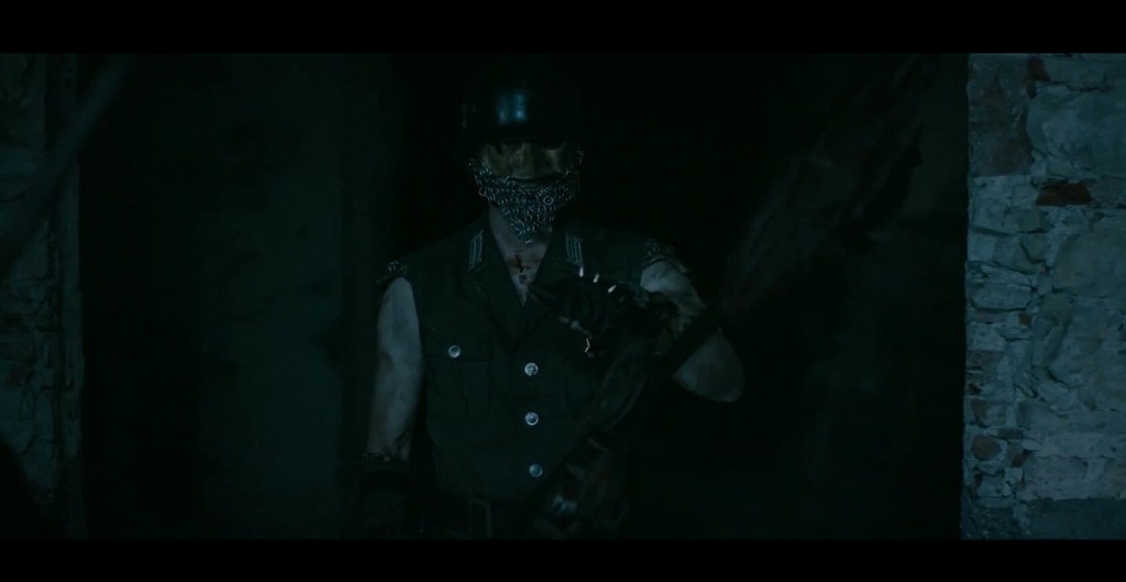 Now, the title already irks me. Insinuating or, better yet, incepting an idea that hapless tourists will be become victims of Dracula’s curse was a terribly misleading campaign strategy to get the Dracula, or just simply the vampiric, fanbase to hop aboard a quick cash in on the Lord of Darkness. However, “The Curse of Valburga” is an apt title for a slasher-survival tale around the sawblade killer who hunts trespassers for his crypt-dwelling clan in the cellar. Gorkic never fleshes out the enjoyable turn of events with the mysterious group that causes all of the tourists’ troubles in full disquisition and tries to sneakily skimp by with just a rudimentary, flyby explanation that doesn’t clearly paint the picture or really denote a reason. One thing Gorkic didn’t convey confidently was the appearance of the chief who wore a MM35 or MM40 style German helmet on top of a metal and chainmail masked face and sported a cutoff sleeve shirt while flinging giant-saws from a handheld slingshot rifle. I wanted to know that guy’s backstory! Yet, each character is cut short and never massaged with arc to care about and, frankly, wanted them all to feel the serration of the saw from how terribly poor they’re written. It’s as if the characters were farmed to be massacred, having no sense of purpose to live or garner audience sympathy to overcome the struggle, and just like the characters, the story is also equally deprived of a proper concluding finale that leaves us hanging, waiting for that satisfying high-five. The script written by Gorkic might be poor in arc development, but I will say the Slovenian filmmaker does have a small taste for comedy as there are moments that will have you chuckling, especially the phone call between Sven and Gregor Skocir in what’s llike a classic Abbott and Costello dialogue gag.