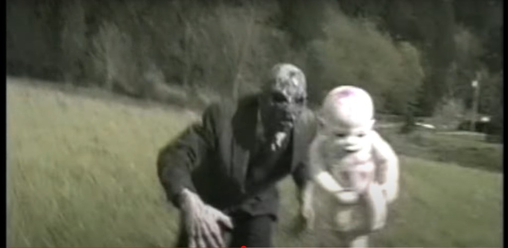 Just from the above synopsis, this film sounds nuts, darkly funny, and depraved all wrapped into one undisclosed file of sex, gore, and floating baby dolls.  And, you know what?  It’s all true.  The creator behind all this madness is Matt Jaissle who helms the shot-on-video “The Necro Files” as an underground horror spoof of a popular science fiction you made have heard of – “The X-Files.”  The Truth is out there.  Well, the truth is actually not in the sky, it’s under the dirt, it’s inside some scantily cladded woman being molested by a rotting corpse, and it’s in a doped-up cop looking to wipe all the scumbags off the face of the Earth.  The 1997 released is co-written between long time Jaissle collaborators Todd Tjersland (“Faces of Gore” series) and Sammy Shapiro, based off of Tjersland sleazy horror comic series “Psycho Zombie Love Butcher,” and is the third film from Jaissle that solidifies the filmmaker as a certifiable depravity and gore-meister that has themes of rape, necrophilia, heartless exploitation, and disembowelment clothed as clearly a comedy.  Filmed around the surrounding Seattle, Washington area, “The Necro Files” is produced by Jaissel with Tjersland serving as executive producer Washington state-based Threat Theatre International production banner.