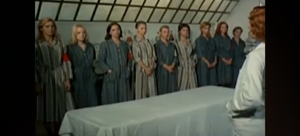 Nazi officer Colonel von Kleiben heads a concentration camp where he experiments of young Jewish and Russian female prisoners.  His experiments bore through the encampment lot with unconventional reproductive system surgery for the good of and in the name of purifying the Aryan race, experimentations that also including nonconsensual sexual activities between the women captives and the top physical specimens of the Nazi ranks.  Kleiben’s masked, real intentions are to practice for his own sake in a testicle transplant after a Russian woman castrates him during his attempted raping of her during conflict.  Woman after woman is sacrificed for the surgeon’s rigorous rehearsal by having their uteruses removed and replaced by another and when they expire on the table, their corpses are discarded into the camp’s incinerating ovens.  One Nazi solider is earmarked to be Kleiben’s hope to be whole again and uses the soldier’s affections toward a female prisoner to gain power and control in coercing him blindly into the experiment.