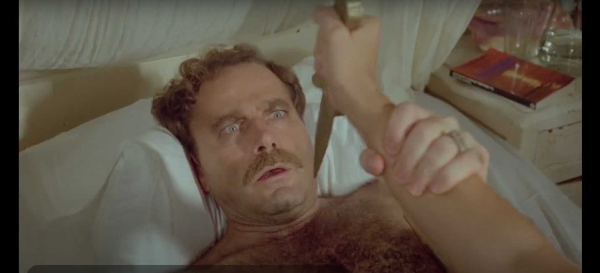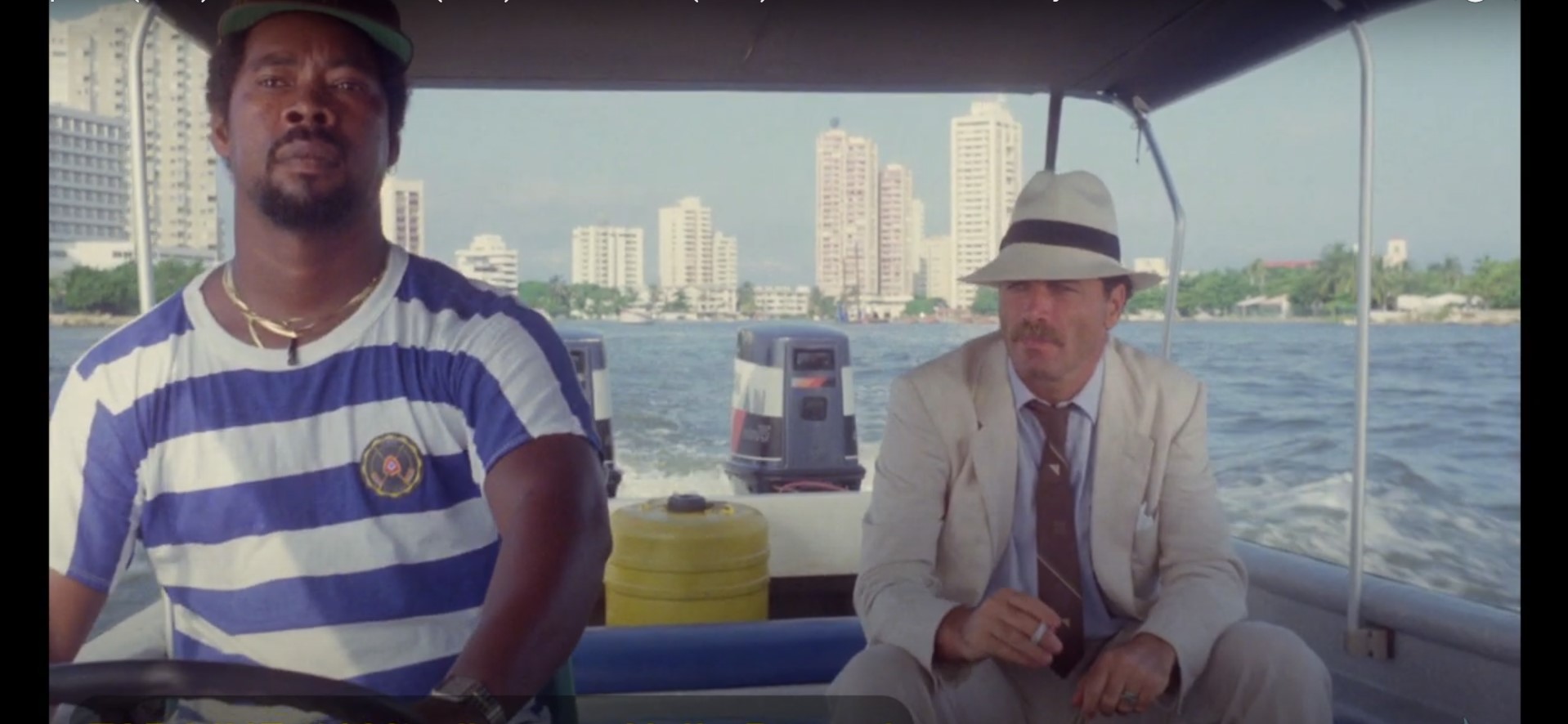 “Top Line” has one of those cinematic stories that’s all over the place pieced together by western inspiration like some sort of genre stitched together Frankenstein’s monster. Unlike the flat top and bolt-necked creature born of electrical current and held together by suture and mad scientist sorcery, “Top Line” doesn’t have any hideous scars or an unfavorable attitude deterrent but what the Nello Rossati film does feature similarly are the monstrous best parts, such as unpredictability, a pendulum of excitements, and an everyone has grabbed their pitchforks and is out to get you sentiment. “Top Line” is a wild, exciting, volatile ride set in the heart of a landscape and culturally showcased Cartagena and the ever game, Italian actor Franco Nero at the helm steering what at first appears to be an adventurous escapade of treasuring hunting and covert coverups in act one and two suddenly careens into an assault of astro-terrestrials forces to the tune of the fourth Indiana Jones film, “The Kingdom of the Crystal Skull, by crescendoing third act. “Top Line” is just as theatrically thrilling without the whipcrackin’, fedora-wearing, family friendly archaeologist with multiple blood squib shootouts, a superb tongue-and-cheek car chase down winding mountainside road, and the hydraulics-driven special effects transfiguration your eyes need to see to below.