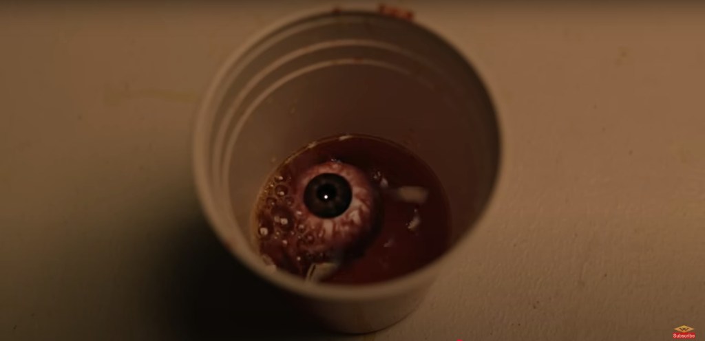 Between the hilariously staged “Jurassic Park” callback moments and an unnerving number of gags around the butt region (raptor feces, fossilized raptor buttholes, butt jokes in general), “The Invisible Raptor” has a lot of humor that’s either smart or misses the mark, but not by much in the cogently confined venture packed full of heart, heroism, and havoc on a prehistoric, science-fiction level.  “The Invisible Raptor” may be a modern-day gory comedy-horror but that gory-horror element combined with a bit of underground covert weaponization of dinosaur has a real throwback sense to the early 90’s to early 2000’s dino-horror, such as the “Carnosaur” films, “Tammy and the T-Rex,” and, of course, “Jurassic Park.”  Dino-horror is a niche subgenre that’s rare explored unless it’s totally satirical (“The Velocipastor,” “The Jurassic Dead”) or rooted more in a lost world aspect, sporadically released throughout the decades with “Raptor Island” or the more perilous journey of “Land of the Lost,” original series and it’s more comedic feature remake.  Hermosa quickly moves out from the testing bunker lab that has been the Raptor’s home and where the scientist treat it like an adored, harmless child, a theme of attachment to harmful things we shouldn’t be attached to and gets right into the mayhem by letting it loose in only a way one could perceive a raptor would – in indiscriminating bloodshed.   Hermosa also doesn’t flinch with an invisible titular foe, one the actors have to mentally conjure up to play against in a combative or cat-and-mouse scene, with neatly composited special and visual effects of floating objects, quickly consumed severed heads, and silhouette work through blood spray, heat vision, and a shower curtain by the talented Steve Johnson (“Lord of Illusions,” “Species II”) and Dorian Cleavenger, both of who bring years of experience and both of whom have worked together for the effects of Robert Englund’s “Fear Clinic.”