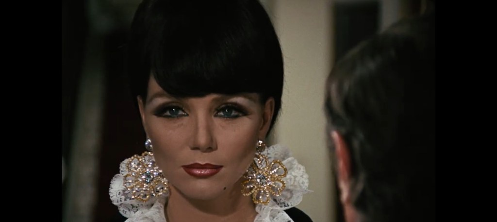What’s interesting about “A Hyena in the Safe” is the beginning of the story plotted at the act of reassembling the team and only provide expositional context to a heist well after it’s been done, eleven months ago in fact. All the characters are fresh and unknown to the audiences, we don’t know their personalities, their skills, their habits, or their attitudes toward one another, and all that dynamical odds and ends has processed, forcing those new to the film to watch, listen, and learn their way through the personality types and the situation at hand. The tension is quickly laid out amongst the already side-eying and suspicious group of sophisticated thieves that react no differently from the lower class of thief with same cutthroat intent. Keeping up with Canevari’s edited pacing and unconventional angle shots that squeeze out the tension with taut framing on expression-filled cutting of eyes and fear-induced faces, the mounting intriguing factors wet story hungry appetites with playful catering of the imagery that also consists of fixed and tracking shots. Considering the film’s more conservative decade, Canevari builds tasteful implied sexual acts between conniving characters and is only explicitly, in physical means, when the scene calls for it, leaving gratuitousness begging to be let in. One aspect with the pacing that hurts the enticingly heightening pressure cooker between the first act’s slow trot through choppy seas of character dynamics to elucidate taciturn behaviors and backdoor alliances and the last act’s spit firing and cutdown of those who are left standing, there is seemingly no middle act to funnel the trepidation and mystery from one end to the other in an abrupt ease into a quickly diminishing situation that goes from murder mystery to battle royale with switchblade umbrellas, electrifying door handles, and an indoor garage that can turn into an asphyxiating fish tank in a matter of minutes. There’s an early James Bond campiness to the story’s temperament that can’t be ignored while be positively and simultaneously interesting.