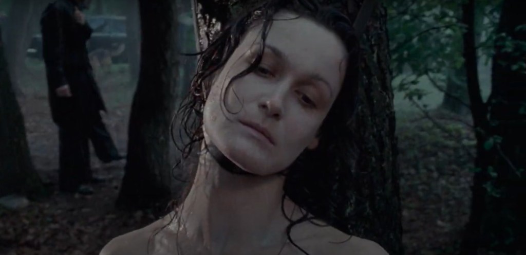 As much as the Grieco and McDowell dynamic works to monstrously depict a coldhearted and crafty serial killer coupled with a sliver of slithering supernatural propensities to lure women and children in a fixed trance or, in more conventional means, into doing what he wants with an spellbinding combination of stares, manipulative conversation, or just overall emitting a towering communist cloud of authority, “Evilenko” is deflated by the story’s time lapsing.  Opening with Kyiv 1984 and then subsequently in Crimea five years later in 1989, the noting of years or periods is hereafter eliminated from the narrative that becomes a back-and-forth yarn between a select of Evilenko’s pied piper lures and kills and magistrate Lesiev always behind the eightball pursuit of the elusive, unknown killer.  There’s a loss of sight on Lesiev’s psyche that is very important to the story and more so at the climatic interrogation scene where both men are stark-naked in a power and controlling situation that harks back to Evilenko’s mesmerizing tactics used against the adolescent prey and Lesiev’s fear and obsession of losing his family to what once was an uncatchable slaughterer who hallmarked with mutilation and devouring.  Grieco’s willingness to be grisly is tamer than the expected based off the prologue scenes of Evilenko exploiting and nearly raping a preteen girl but doesn’t take away the effect that the entire narrative arouses an uncomfortable experience teased to always be on the edge of overly graphic but never breaking that threshold; “Evilenko” is one of the biggest blue balls instigators is in last 20 years and that rush of not seeing or knowing can be more thrillingly charged for some than anything totally explicit ever could produce.