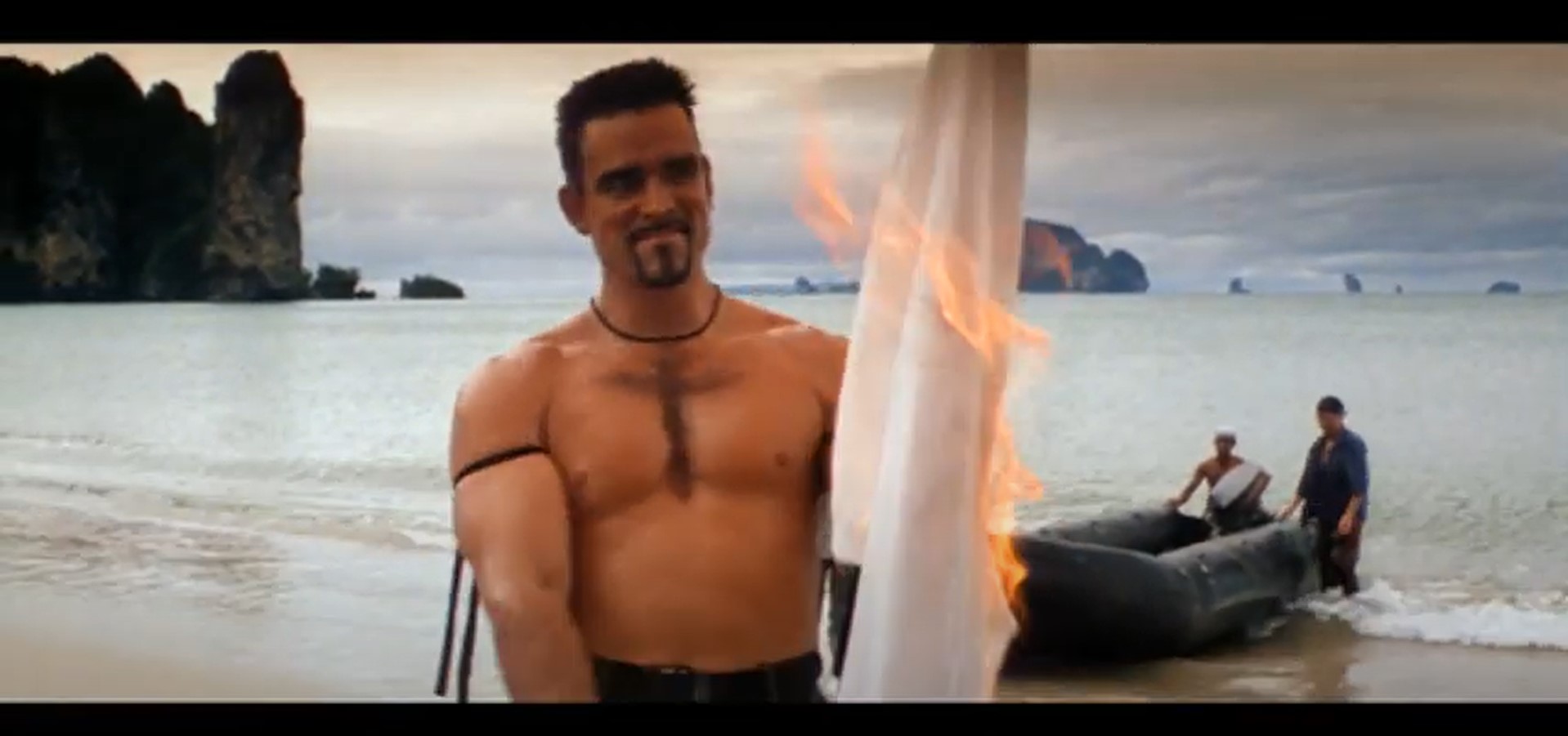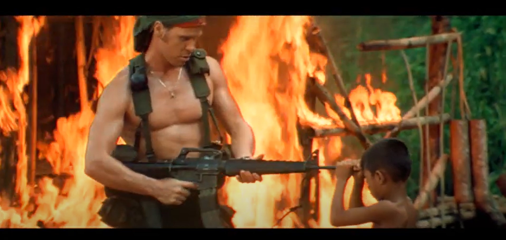 Cast ensemble of familiar faces makes “Men of War” easier to digest when considering the threadbare sensical plot.  If taking the trouble to hire mercenaries to negotiate the signature surrender of property, the company investors might as well have used extreme force instead of finesse as the good Colonial Merrick suggests to Gunar.  “Men of War’s” setup is not very sexy to establish a radical rational to plot against the native denizens, fast-forwarding and skirting through the first act’s purposed goal and recruitment of characters is sullied by that dilution of plot device.  The recruiting montage is what hurts the most that shows Gunar travelling across the globe to handpick past acquaintances for his team, but the history markers are not in place to establish characters behaviors, past or present undercurrents, or anything that really ties them together or tears them apart which eventually happens when a line in the sand is drawn.  Even Keefer’s neglected volatile bad juvenile behavior is crucified by zero backstory substance.  “Men of War” bravely relies on the future to flourish and does so quite well by creating a dichotomy between a paid duty and a moral deed, especially when falling in love with a native girl is involved.  Explosions, bullets, and various kinds of melee skirmishes rock the story’s intended searching for inner peace theme and there’s no shortage or pulled punches with the pyrotechnics or squib-popping gunplay.  Perry Lang and producers make no qualms about the product their peddling by offering a detonating spectacle on a wafer-thin plot to razzle-dazzle on the silver screen and that’s okay.