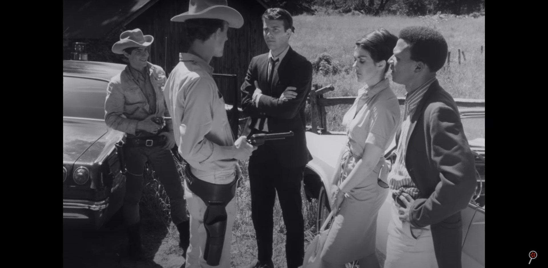 Part of “Girl on a Chain Gang’s” suffocating sleaze success is due in part to William Watson’s rotten-to-the-core, corruption performance as the devilishly intelligent and despicable Sheriff, Sonny Lew. The “It’s Alive III” actor, who made a name for himself in indie westerns as mostly playing a character on the wrong side of the law, debuted his forte into villainhood affairs with this particular Jerry Gross production by portraying an alcoholic lawman with dirt on the most townsfolk of Carson’s Landing and can persuade them like pawns or like lemmings to exact his will. Watson’s good at what he molds for the cigar chewing Sonny Lew by never letting up his foot off the lewdness gas pedal that drifts around internal state investigations into his distortion of the law and even around his own cronies and county bumpkins with secret banter codes that’s clear to them but ambiguous to the naked understanding. The three young northerners are chosen to reflect the stereotypical justifications to be oppressed by racists eyes just for the way they look in skin and in dress despite their education and suitable for society behavior. Because one man is African American and the other two whites consort with him, the activists become relentlessly targeted by the bigoted brigade led by Sonny Lew, colluded his deputies (Ron Charles and Peter Nevard), the town drunk (Matt Reynolds), the see-nothing, do nothing bar own (James Harvey), and the unlicensed town doctor (Phillip Vanyon) who is too frightened of Sonny Lew to act on his conscious. The woman in the mix, Jean (Julie Ange, “Teenage Mother”) reduces down to being the principal object of exploitation inside the story as the titular girl in the chain gang and out being given illusionary promises of future leading lady roles by Gross yet that undertaking never fleshed out. Between Watson and Ange, a genuine baseline of power over someone else is greatly disturbing and not terribly far from reality. Most of the other performances are a bit ostentatiously cliched regarding small town Southerners complete with cowboy hats, being sloppy drunkards, and take with a gimmicky draw. The cast rounds out with Arlene Farber (“Two Girls for a Madman”) as the town floozy, Sam Cutter as Sonny Lew’s public defender uncle and, also including, Ron Segal, Henry Baker, Horace Bailey, Wolf Landsman, Earl Leake, and Richard Antony.